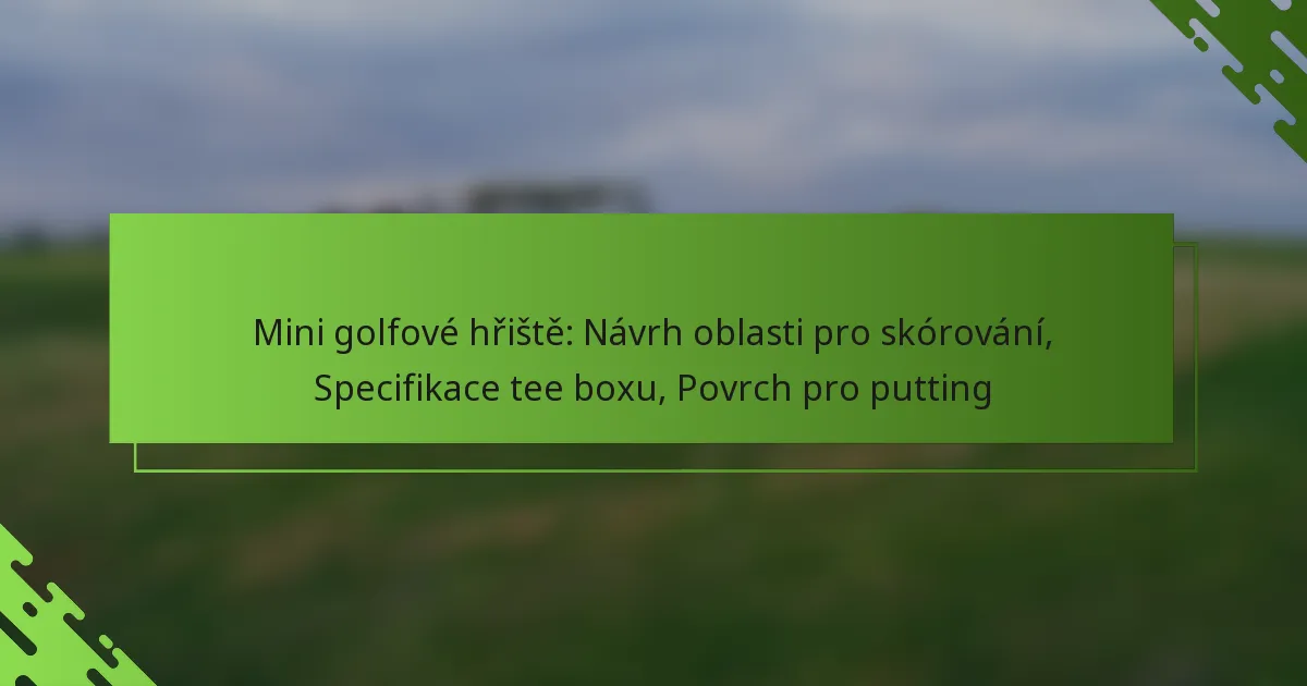 Navrhování minigolfového hřiště zahrnuje pečlivé zvážení oblasti pro skórování, specifikací tee boxů a puttingových ploch. Oblast pro skórování by měla být atraktivní a přístupná, zatímco tee boxy musí poskytovat funkční výchozí bod pro hráče. Výběr správné puttingové plochy, ať už syntetické trávy nebo přírodní trávy, je klíčový pro zlepšení herního zážitku a zajištění trvanlivosti.